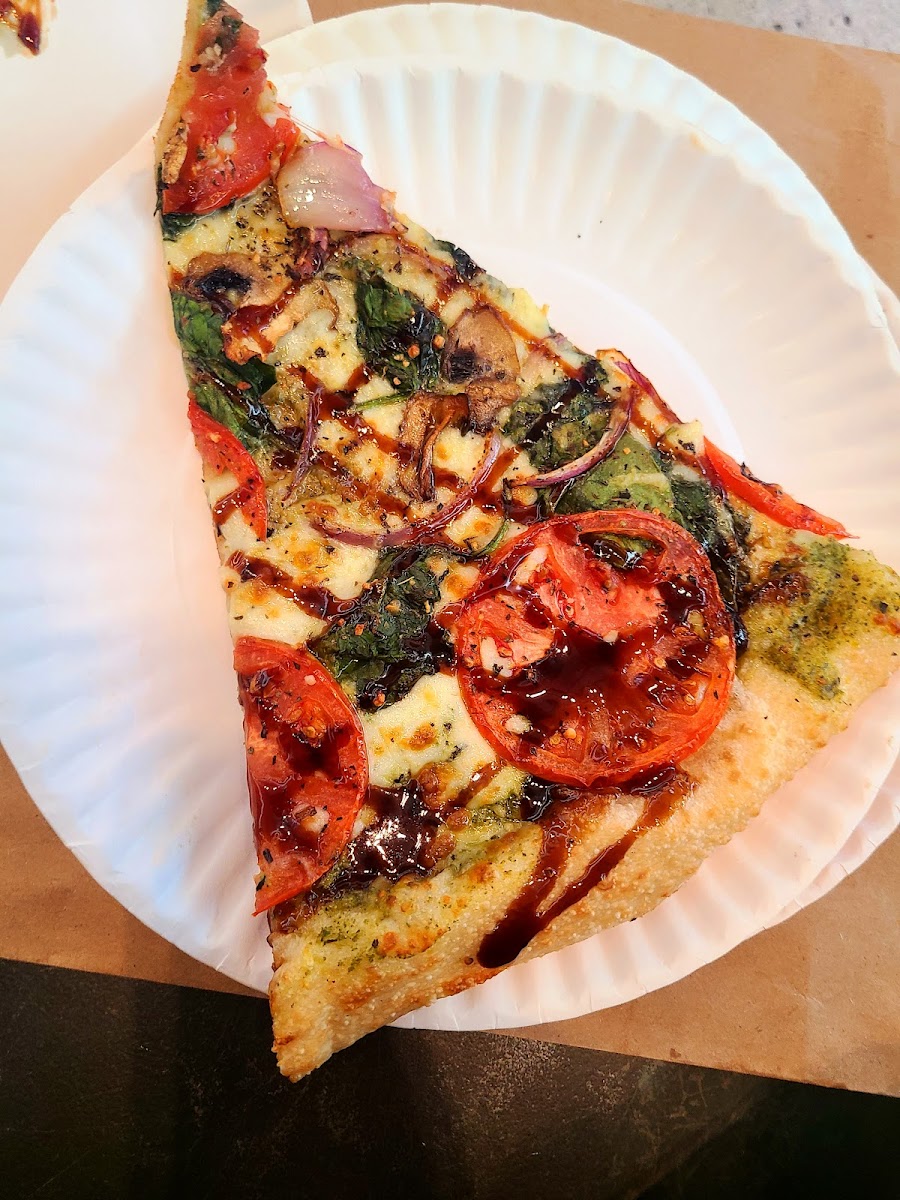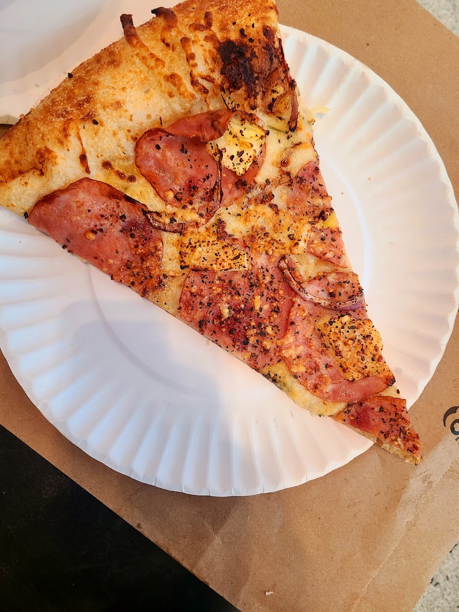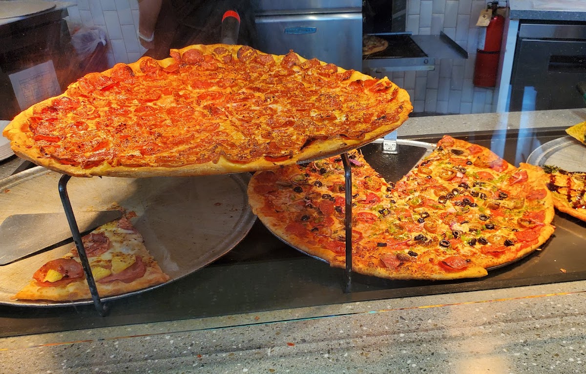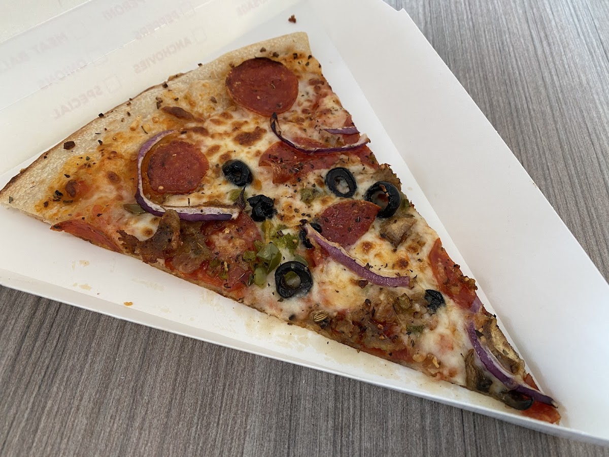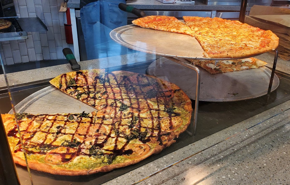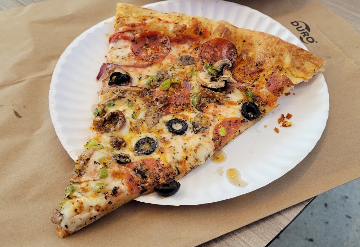 The pizza was good because I'm picky and I bought it fresh out of the oven. I avoided the pizzas that were ready and asked what they had coming out of the oven. Pepperoni was sold out and getting cooked fresh so that's what I got. Two hot and ready slices were good. Greasy but good. I would recommend it if you can get something fresh that you want. Seating is only a handful of tables and a bar (no not one that serves alcohol) against the wall. Beyond that it's at the gate seating. Limited drink variety. I'll return here if I'm in the mood for pizza!