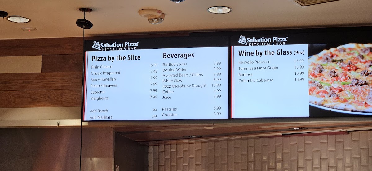 The menu at Salvation Pizza offers a straightforward and approachable selection, perfect for casual dining and quick bites. Featuring an array of pizza slices like classic pepperoni, spicy Hawaiian, and margherita, the menu focuses on familiar flavors served with a thin, flavorful crust that fits a relaxed, neighborhood setting.